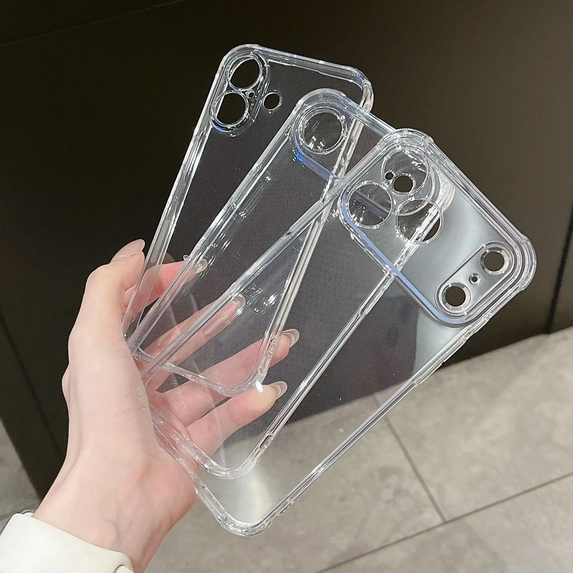 Shockproof Transparent Soft TPU Phone Case For iPhone 17 Air 16 16E 15 14 13 12 Pro Max Plus Clear Airbag Bumper Silicon Cover